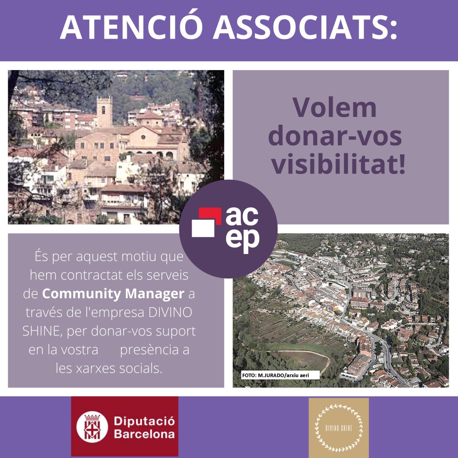- Conveni marc per a la gestió i seguiments per part de l'ACEP de les actuacions proposades envers les necessitats dels nostres associats i dutes a terme per l'Ajuntament amb el suport i subvenció d'altres administracions pùbliques i entitats privades.