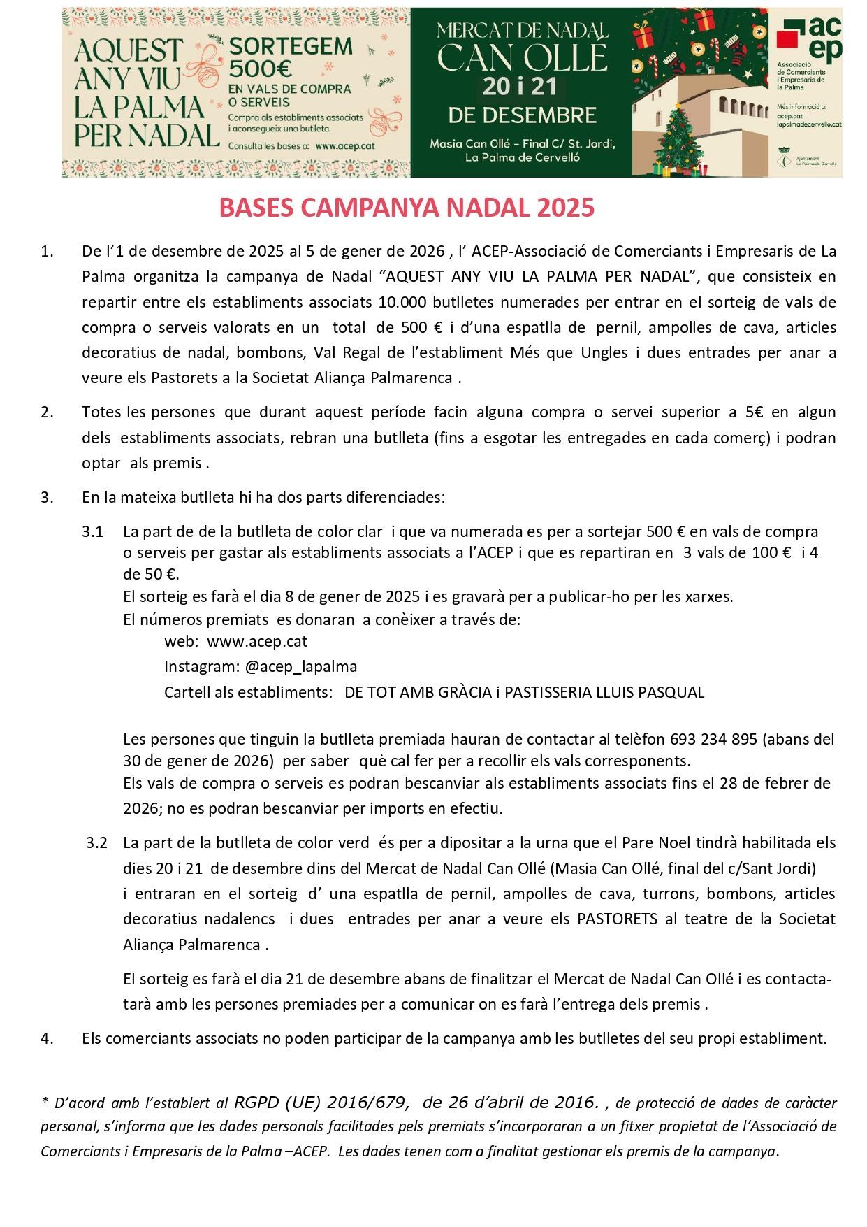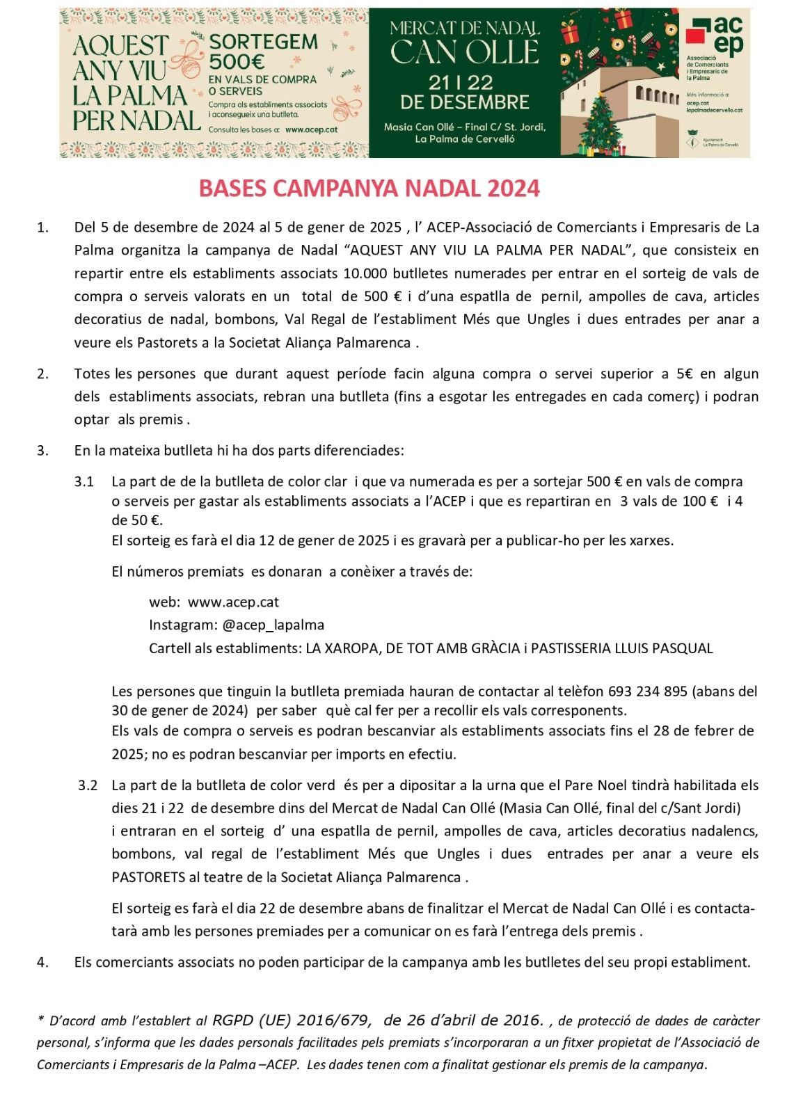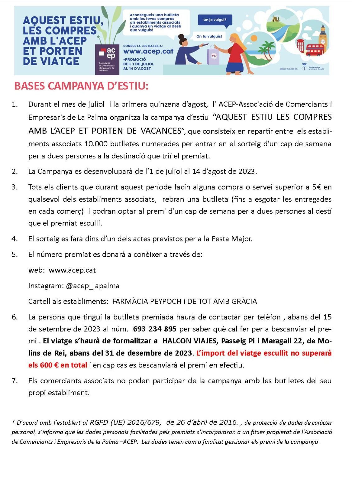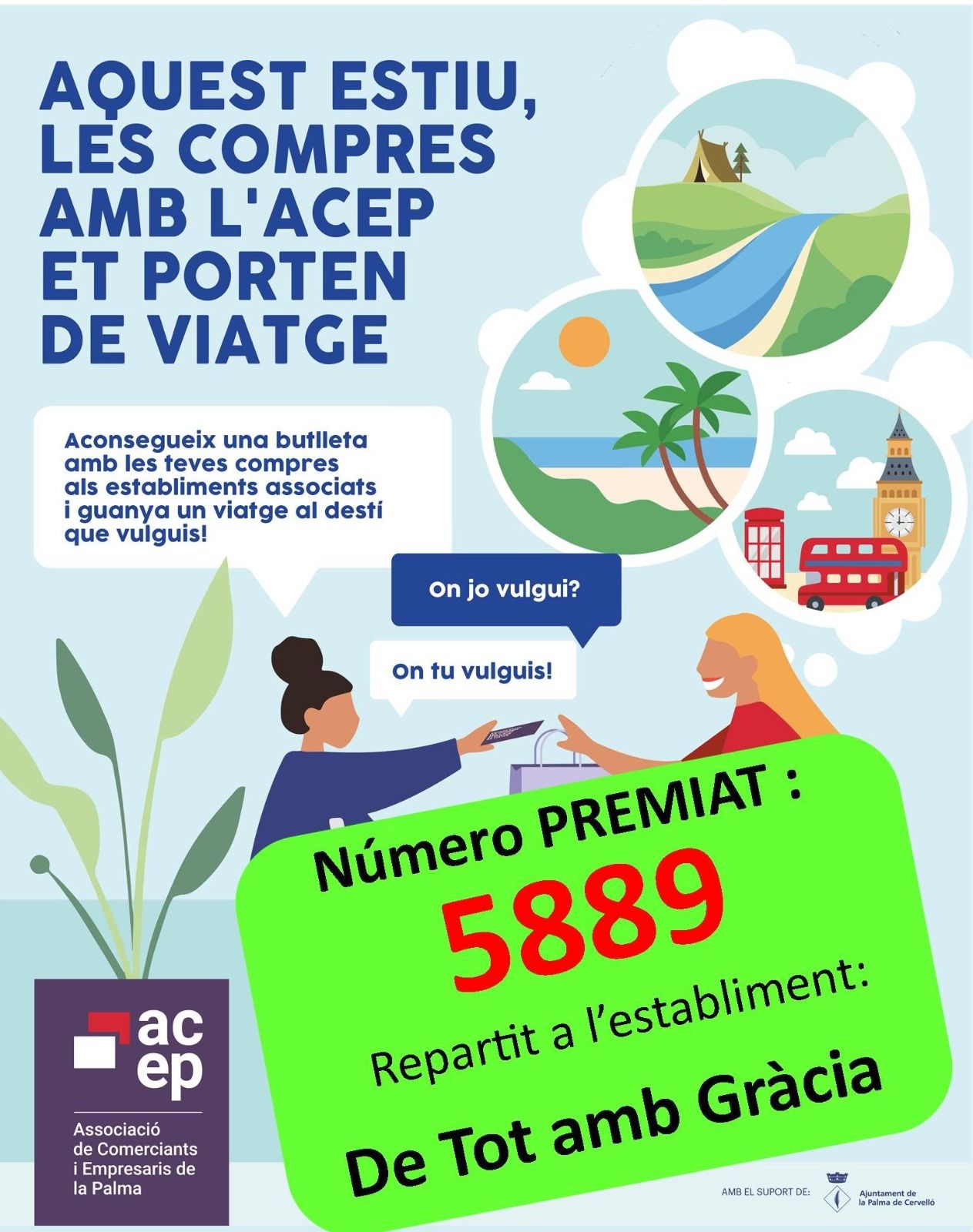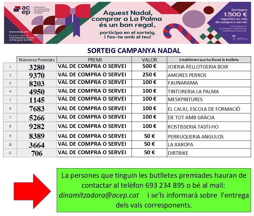 La persona que tingui la butlleta premiada haurà de contactar amb l'ACEP a través del telèfon 693234895 per saber què cal fer per bescanviar el premi.